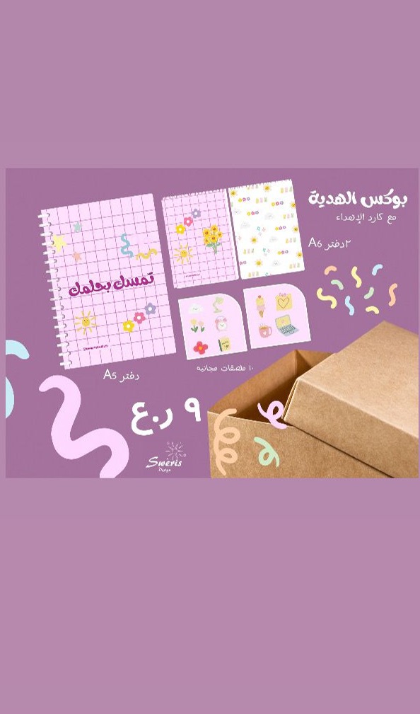 دفترين A6 بغلاف لطيف مع رسومات لطيفه متناسقة مع الثيم كما هو موضح في الصوره